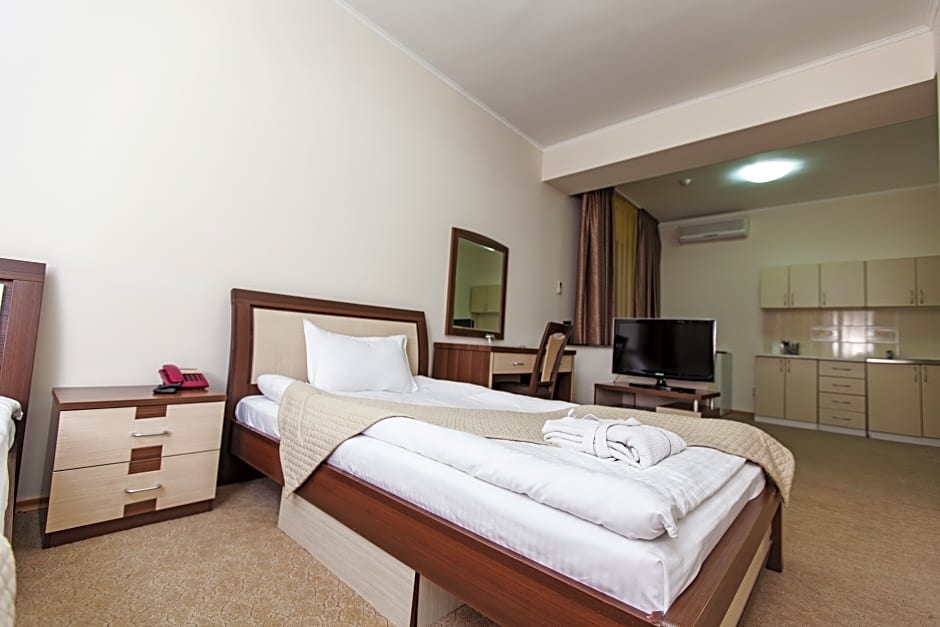 This apartment features air conditioning, a mini-bar, a flat-screen TV with satellite channels, a telephone and a safety deposit box. The bathroom comes with a bathrobe, slippers, a hairdryer and toiletries. The apartment also has a kitchenette with kitchenware, a microwave, an electric kettle and a refrigerator.